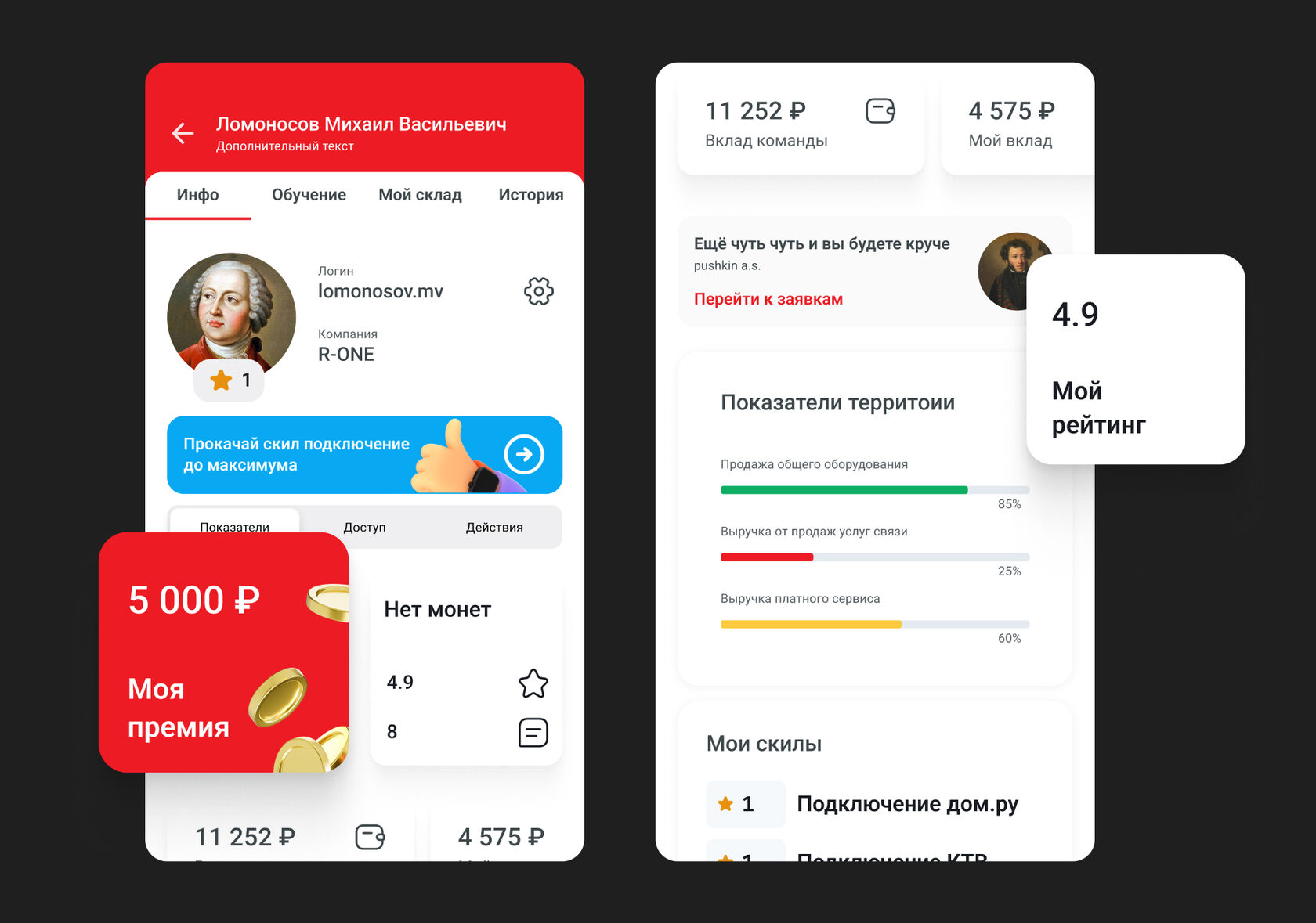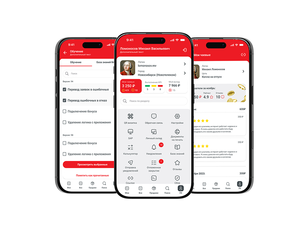 После тестирования на пользователях и качественного исследования, выяснили, что пользователям больше нужен универсальный инструмент, им важно видеть отзывы на себя, сколько он заработал на чаевых и сколько внес команду, но так же важно видеть и основные инструменты, ими они пользуются постоянно.а в концепте мы их спрятали и прилось долго скролить.