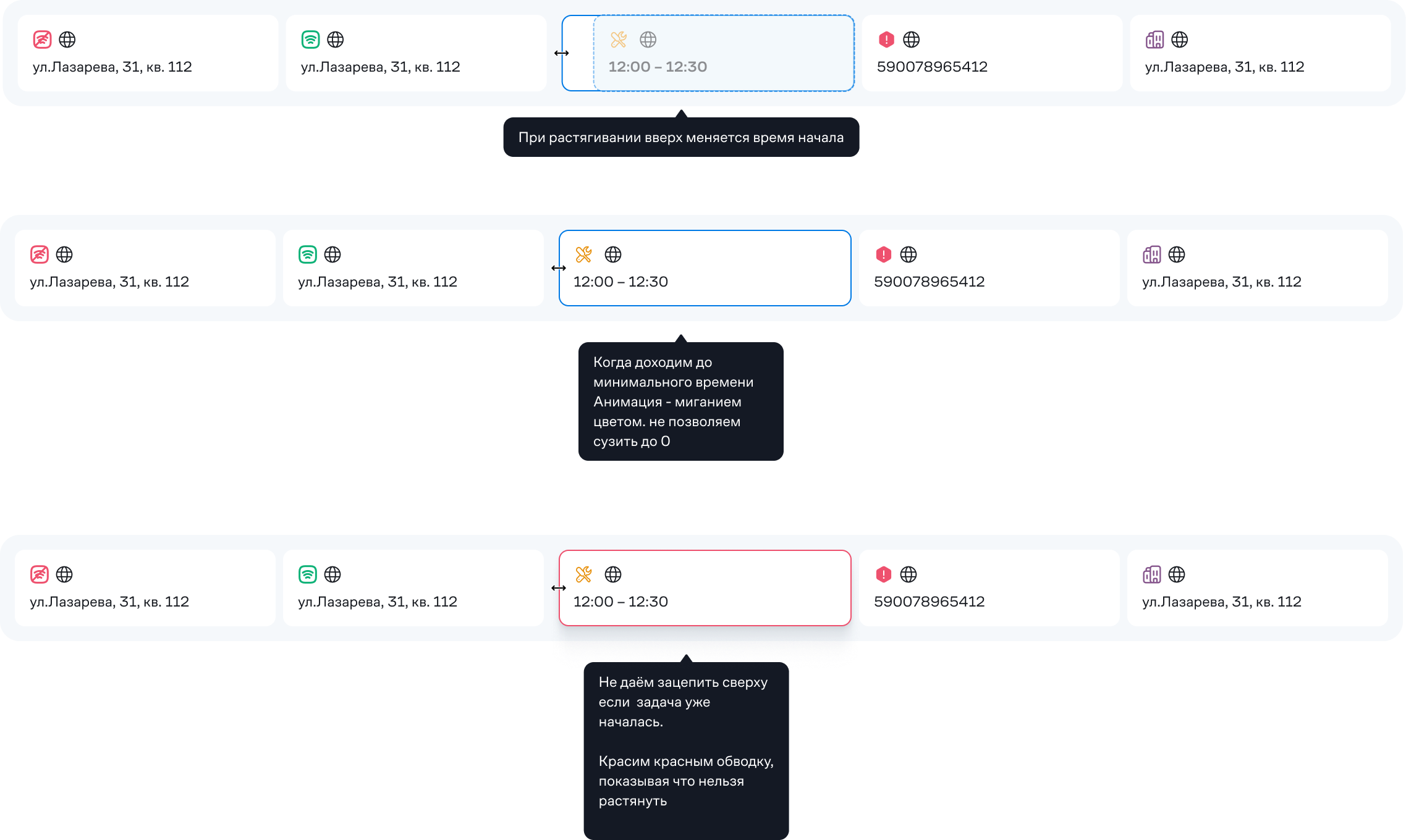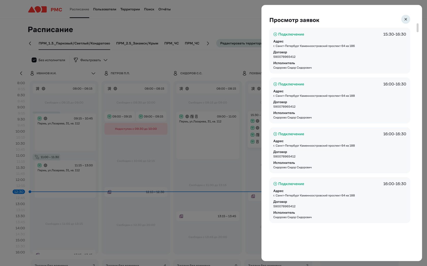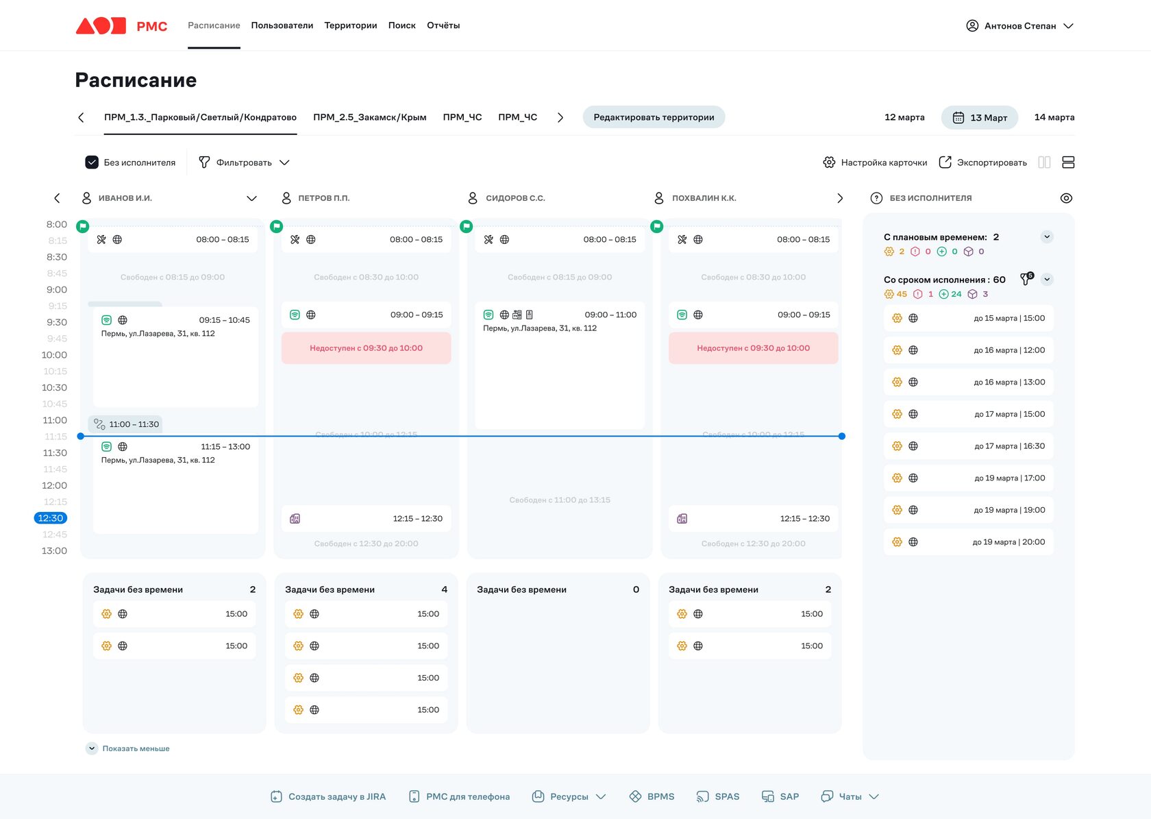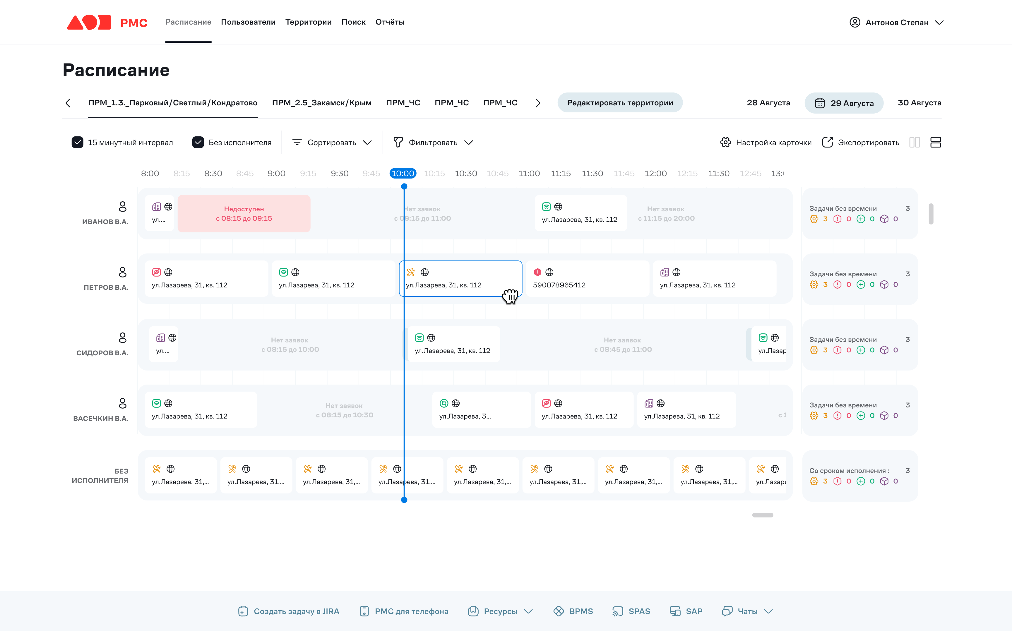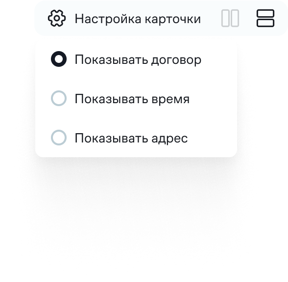 У каждого руководителя своя важная информация, реализовали кастомизацию отображения информации на карточках и просмотр расписания горизонтально